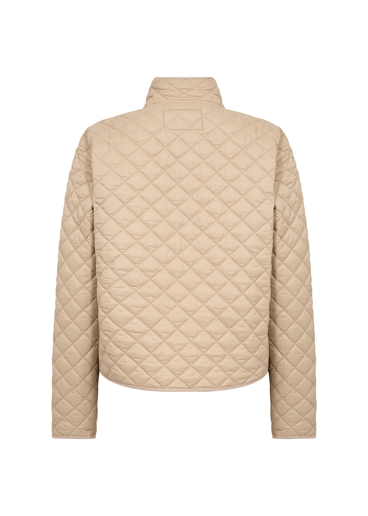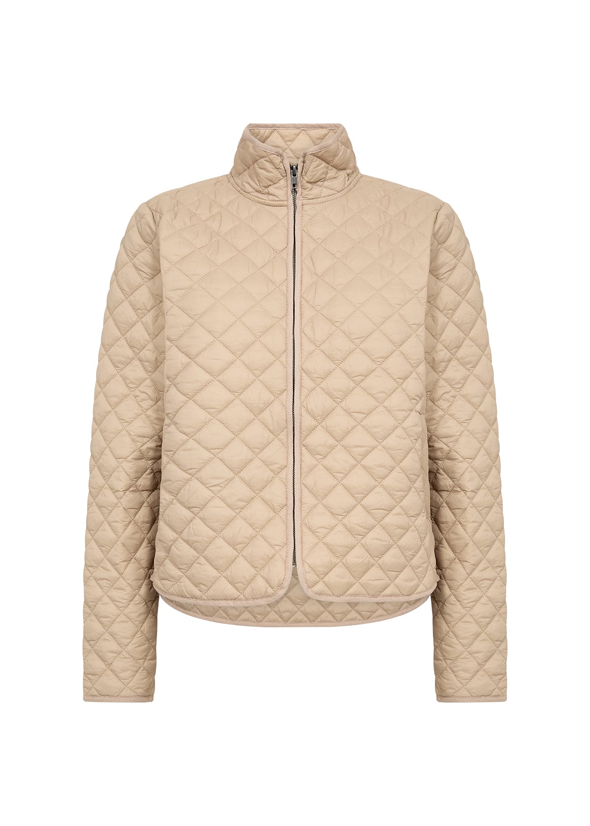 - Er verfügt über eine gesteppte Textur, einen hohen Kragen und einen eleganten Reißverschluss für einen modernen Look