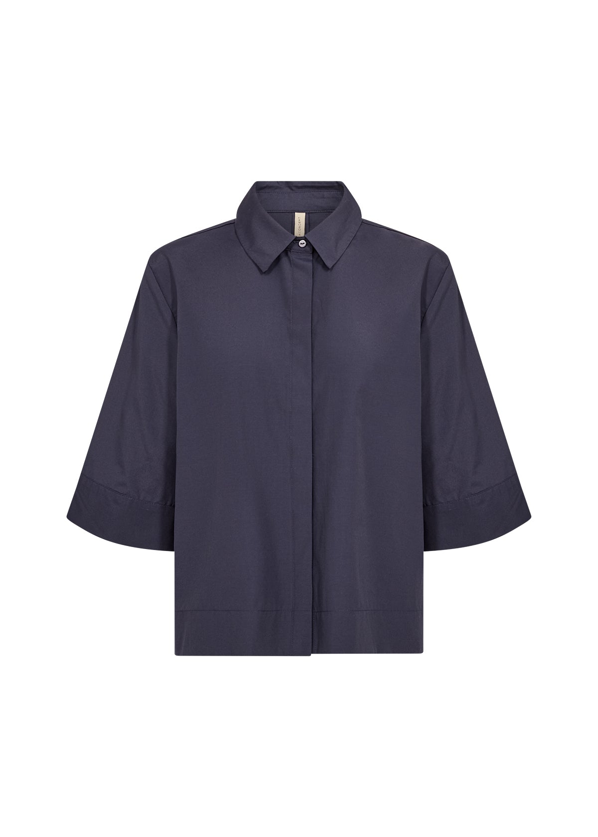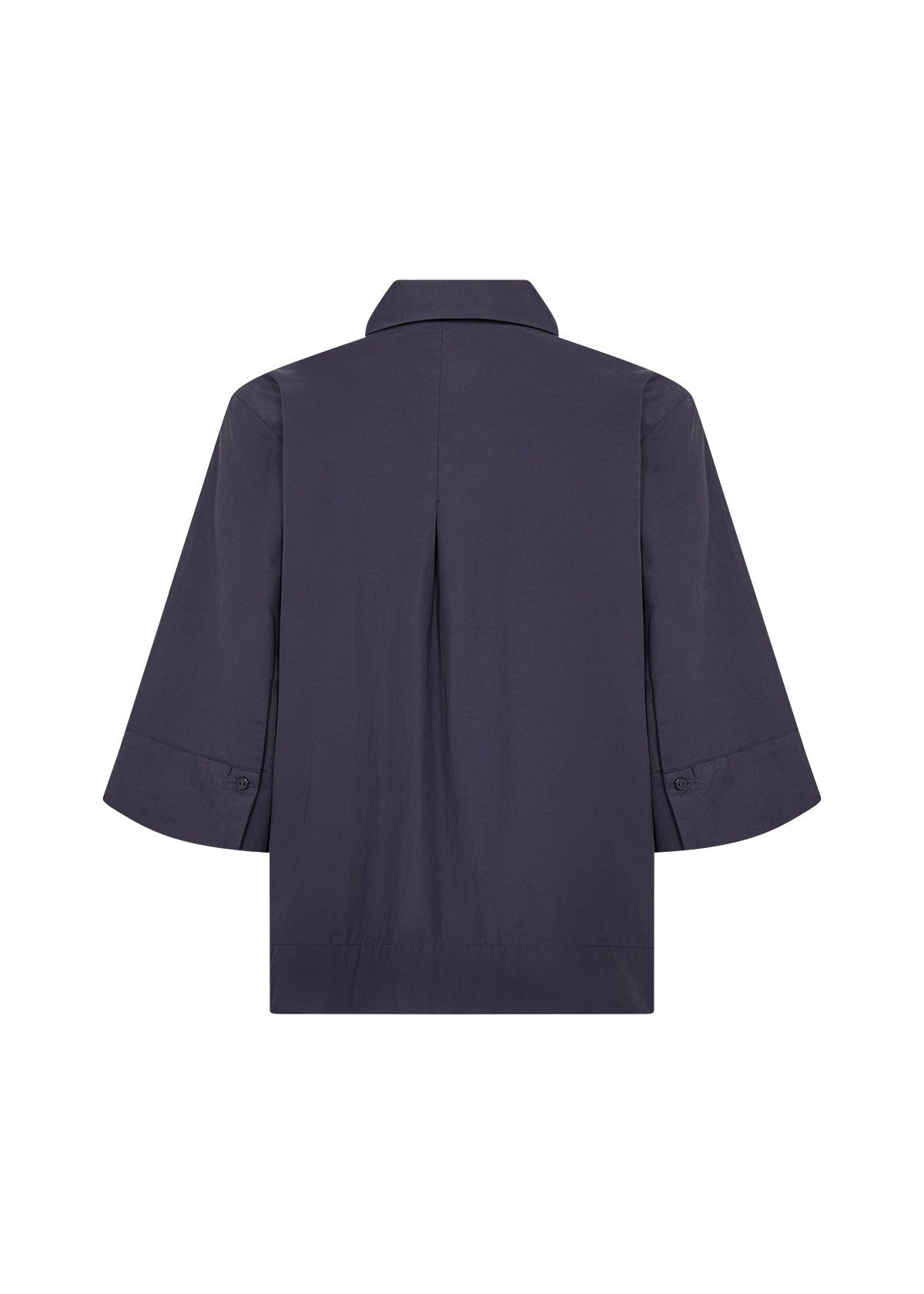 - Das Hemd verfügt über einen klassischen Kragen, verdeckte Knöpfe und einen geraden Saum sowie kurze weite Ärmel